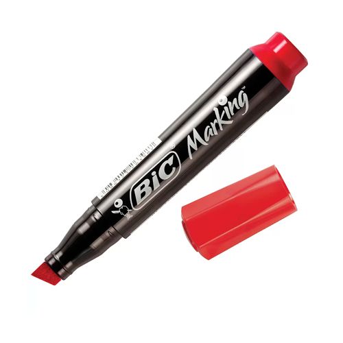 MARCADOR PERMANENTE MARKING RECARREGAVEL PONTA CHANFRADA 1.5 A 3.0MM VERMELHO C/12 BIC