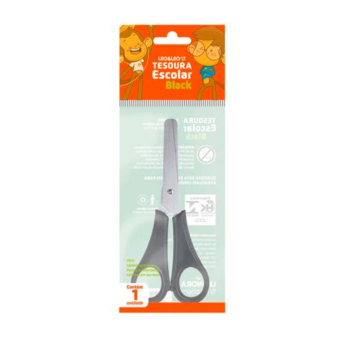 TESOURA ESCOLAR PRETA 13 CM LEONORA LEOELEO